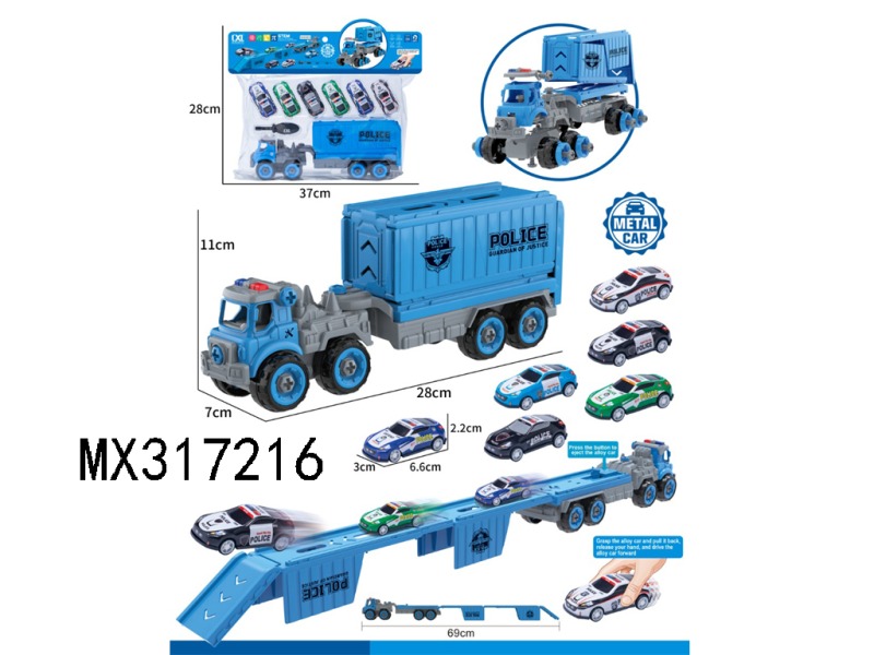 DIY益智拼装弹射轨道货柜车警察套装