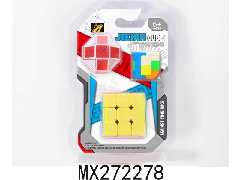 三阶实色魔方+鲁班锁+小魔尺