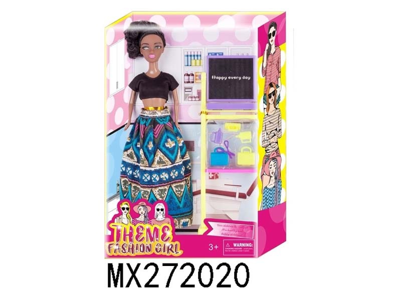 高档主题11.5寸实身黑人芭比带黑板和教材