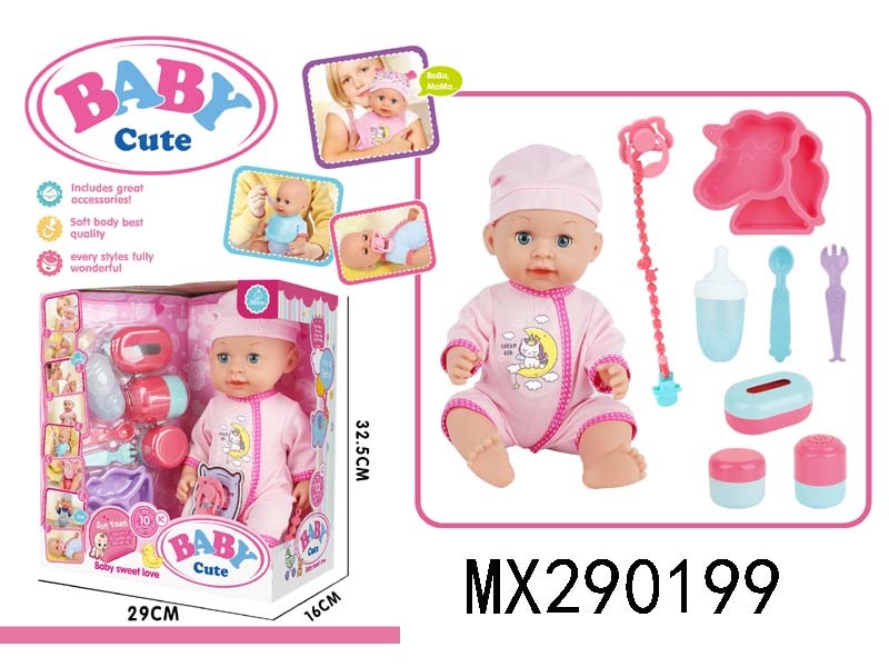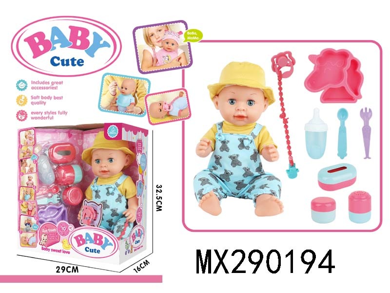 14寸活眼喝水尿尿搪胶娃娃配10声IC包电