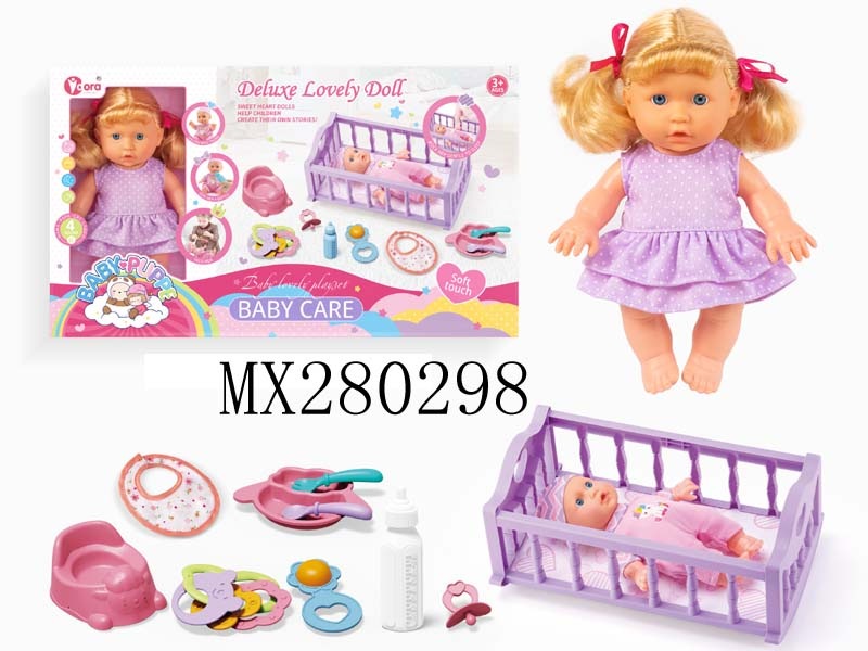 四声9寸女孩娃娃摇床套装