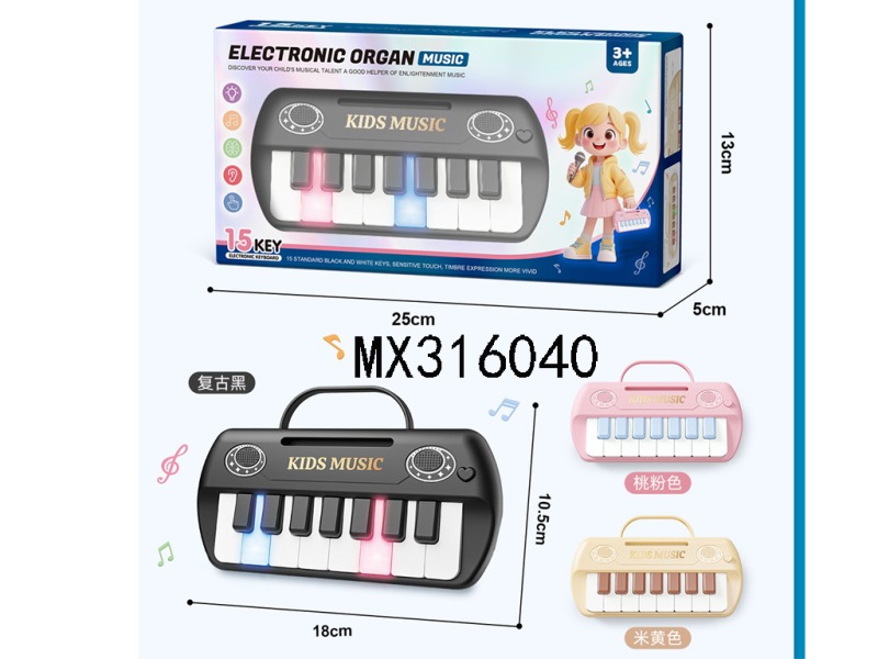 15 key audio-visual handheld electronic keyboard (black/pink/beige)