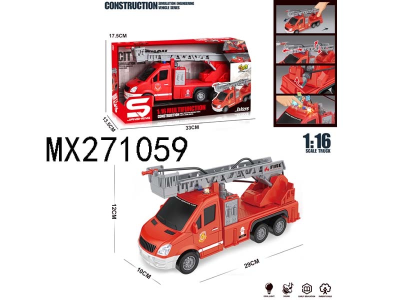 1: 16 inertia ladder fire truck with light, music and water spray