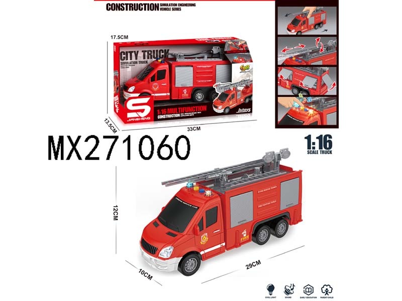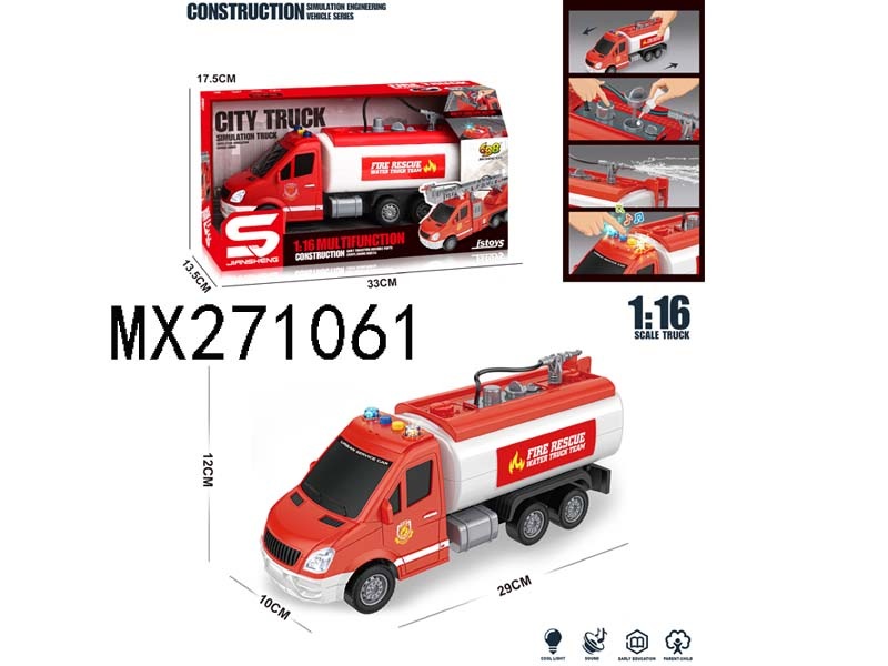 1: 16 inertia fire truck with light, music and water spray