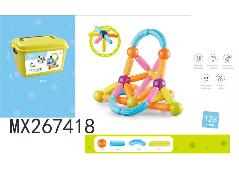 Small size assembled magnetic rod 128pcs + medium storage box