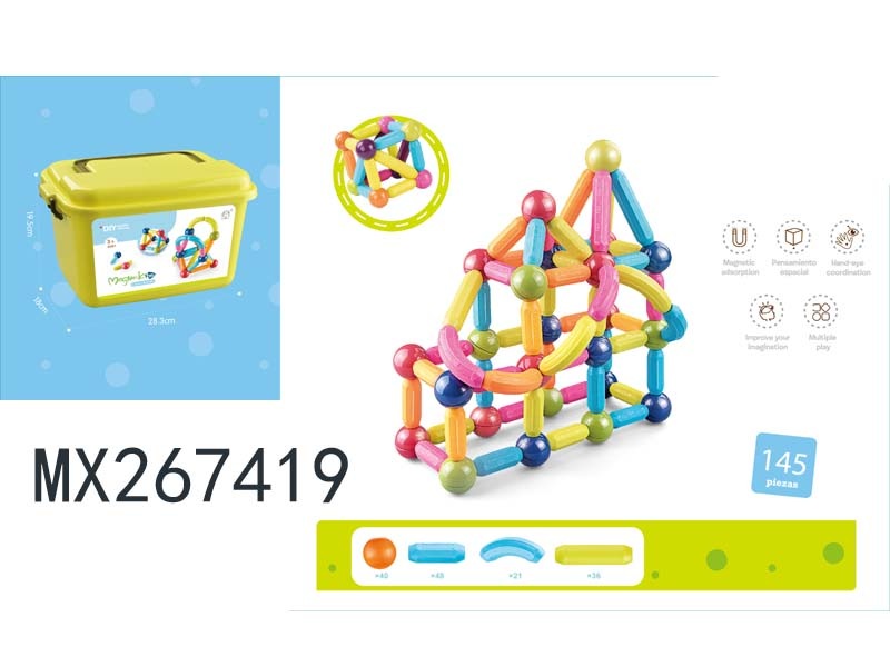 Small size assembled magnetic rod 145pcs + medium storage box
