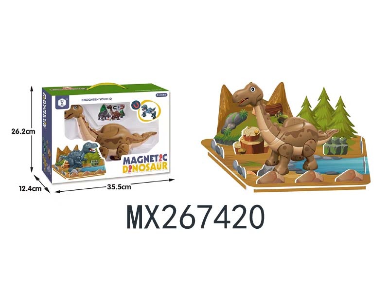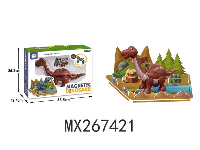 Magnetic assembled dinosaur (longnecked dinosaur with scene)