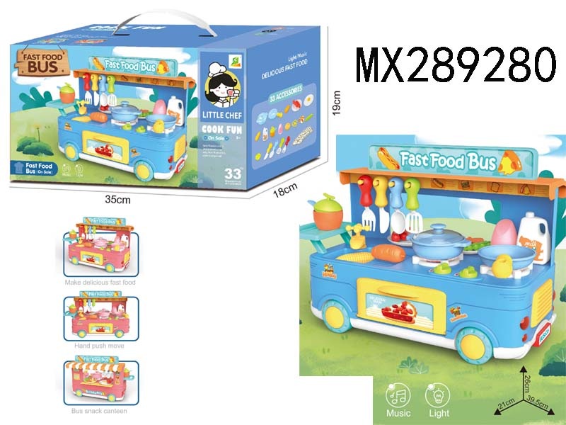 Campus Bus Fast Food Kitchen Set with Light and Sound - Blue