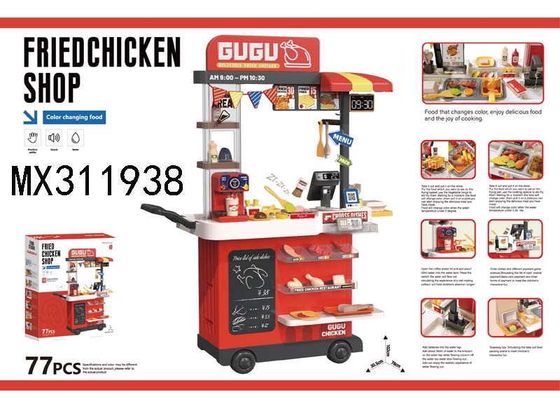 102cm fast food truck - teppanyaki fried chicken restaurant/color changing food/with sound and light/77pcs